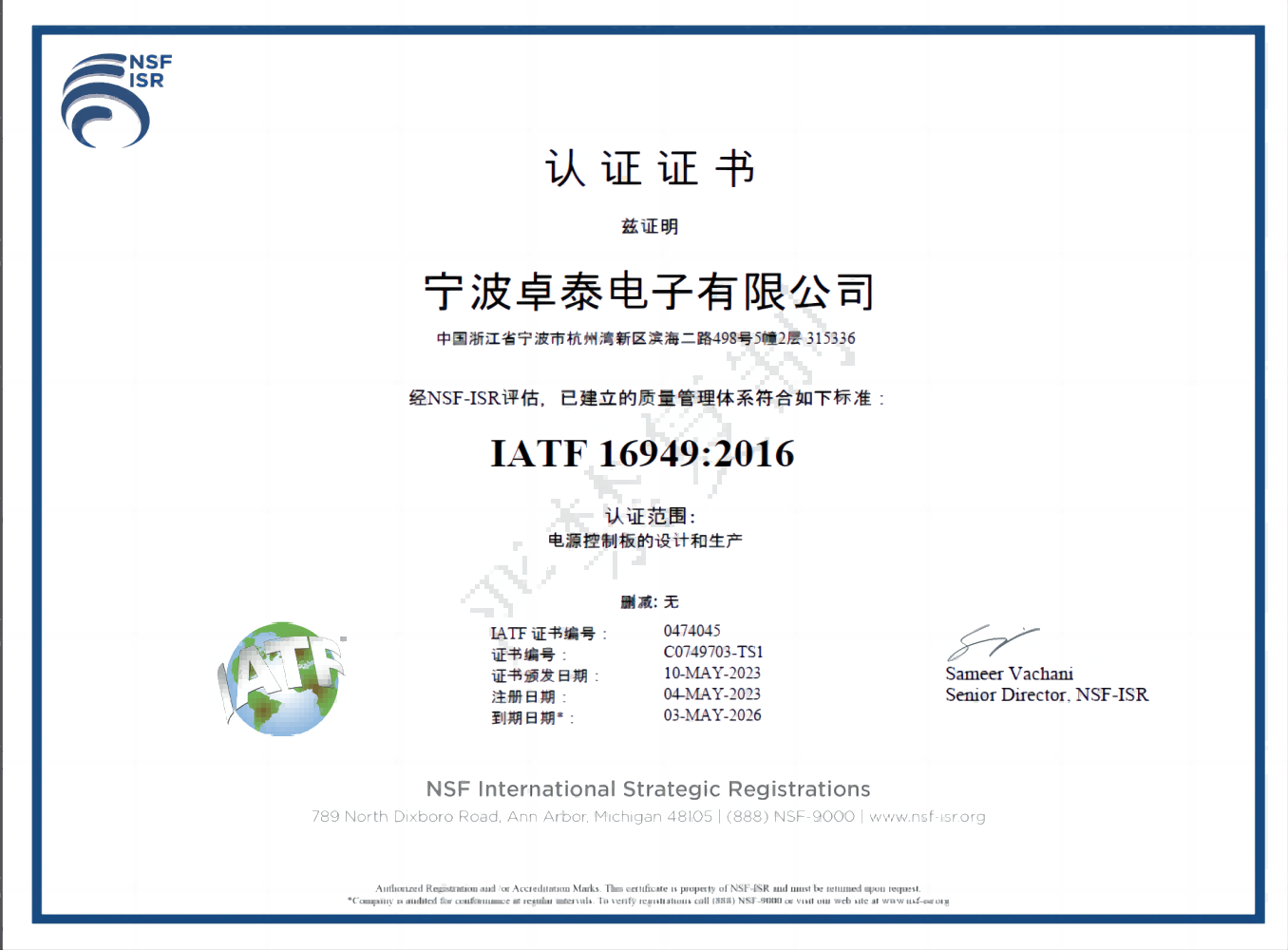 寧波卓泰電子有限公司是一家主要提供嵌入式智能電子控制系統解決方案(PCBA EMS)的科技公司。公司擁有多項專利,以優質的智能控制解決方案提供客戶。始終堅持開發與市場結合,不斷創新實現產品系列化、經營規模化。
